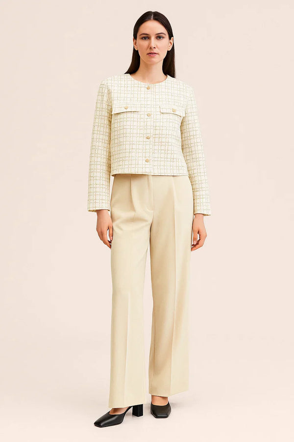 Tweed Short Jacket | Gold Button Detail | Refined Texture