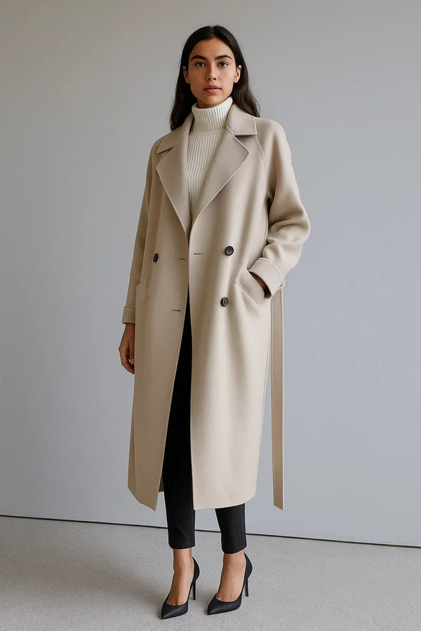 Wool Blend Long Coat | Oversized Fit | Belted Winter Design