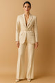 A statement suit designed for precision and poise. The single-breasted blazer is defined by a tonal belt that shapes the waist, paired with flap pockets and a sharp lapel for balance.