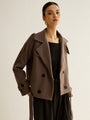 This Amouvelle short coat reimagines classic elegance through a modern lens. Designed with a broad lapel collar and a double-breasted front, it delivers structure and quiet confidence in every line. The cropped cut creates a flattering proportion, pairing effortlessly with high-waisted trousers or skirts.