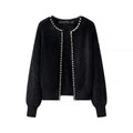A cardigan that blends softness with subtle detail. Crafted in a faux mink effect knit, this piece features pearl beading along the edges for a refined touch. The open front and relaxed fit make it a versatile layer, equally suited for day or evening wear.