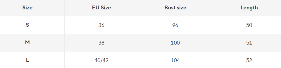 | Special Features | Striped pattern, ribbed cuffs and hem |
