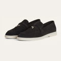 The GRAND ARBRE Suede Loafers in black are defined by refined minimalism and everyday versatility. Crafted from supple calf suede, they offer a breathable and structured finish, shaped with hand-stitched detailing for subtle distinction.